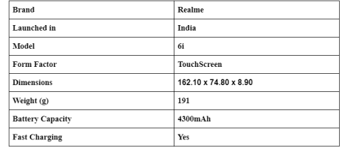 Let’s now quickly go through the Specifications that Realme 6i has to offer.